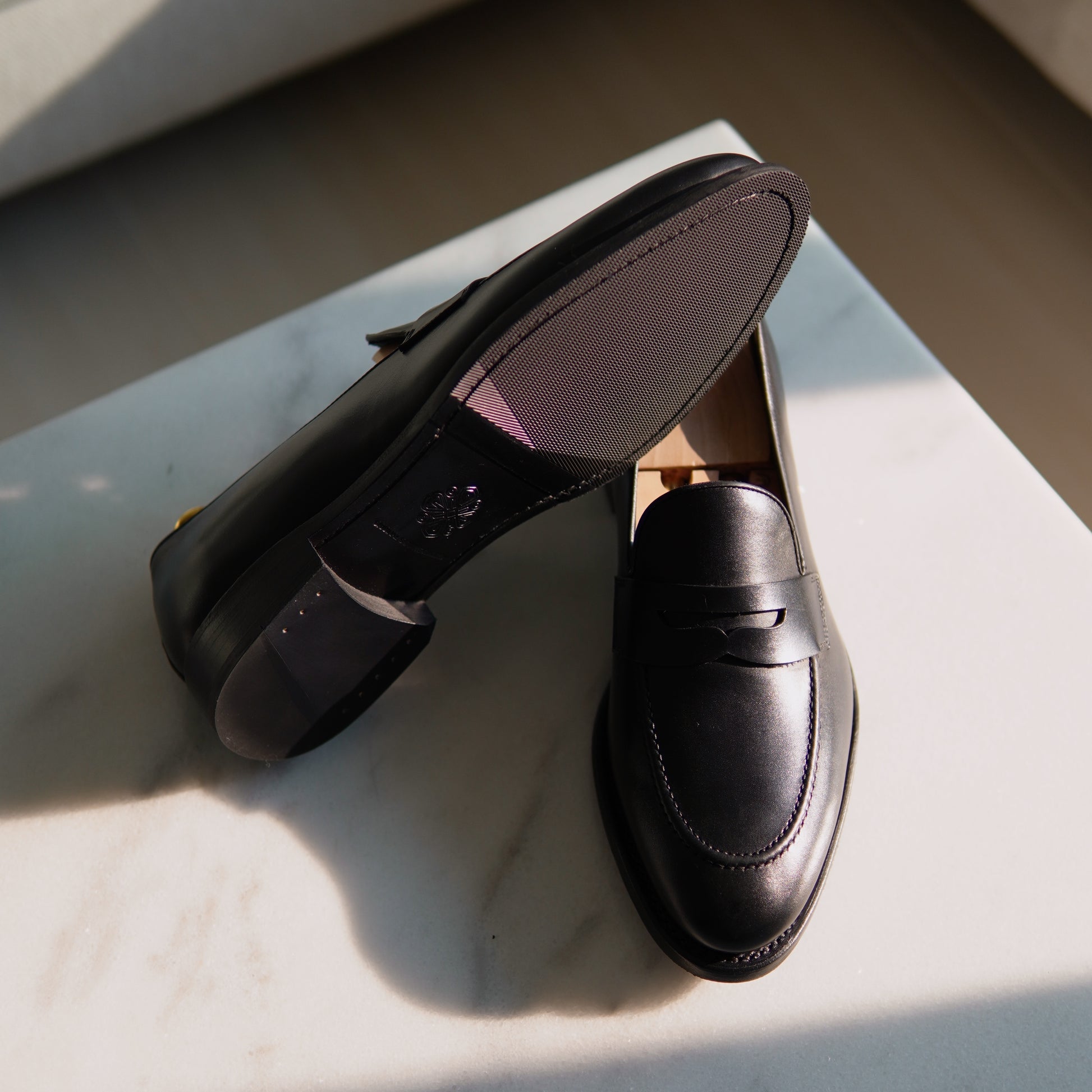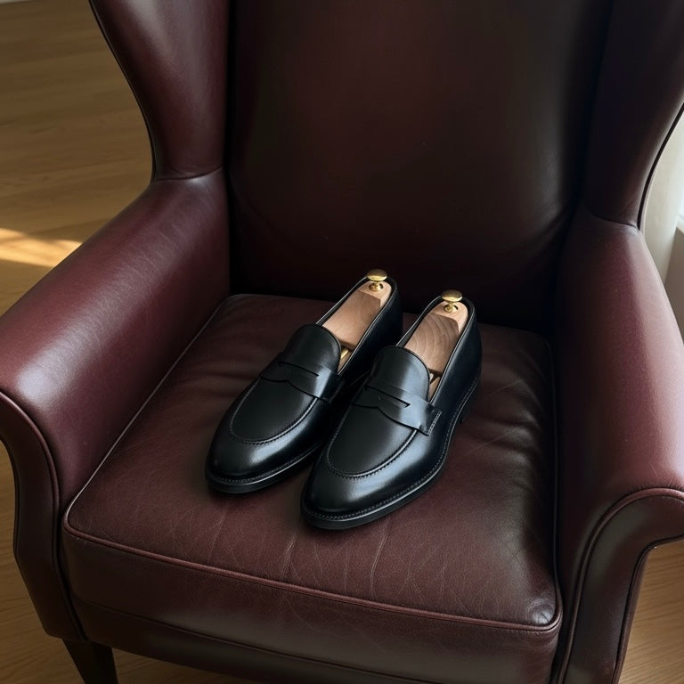 These handcrafted Penny Loafers are made from premium black calfskin leather and feature a timeless rounded british toe design.