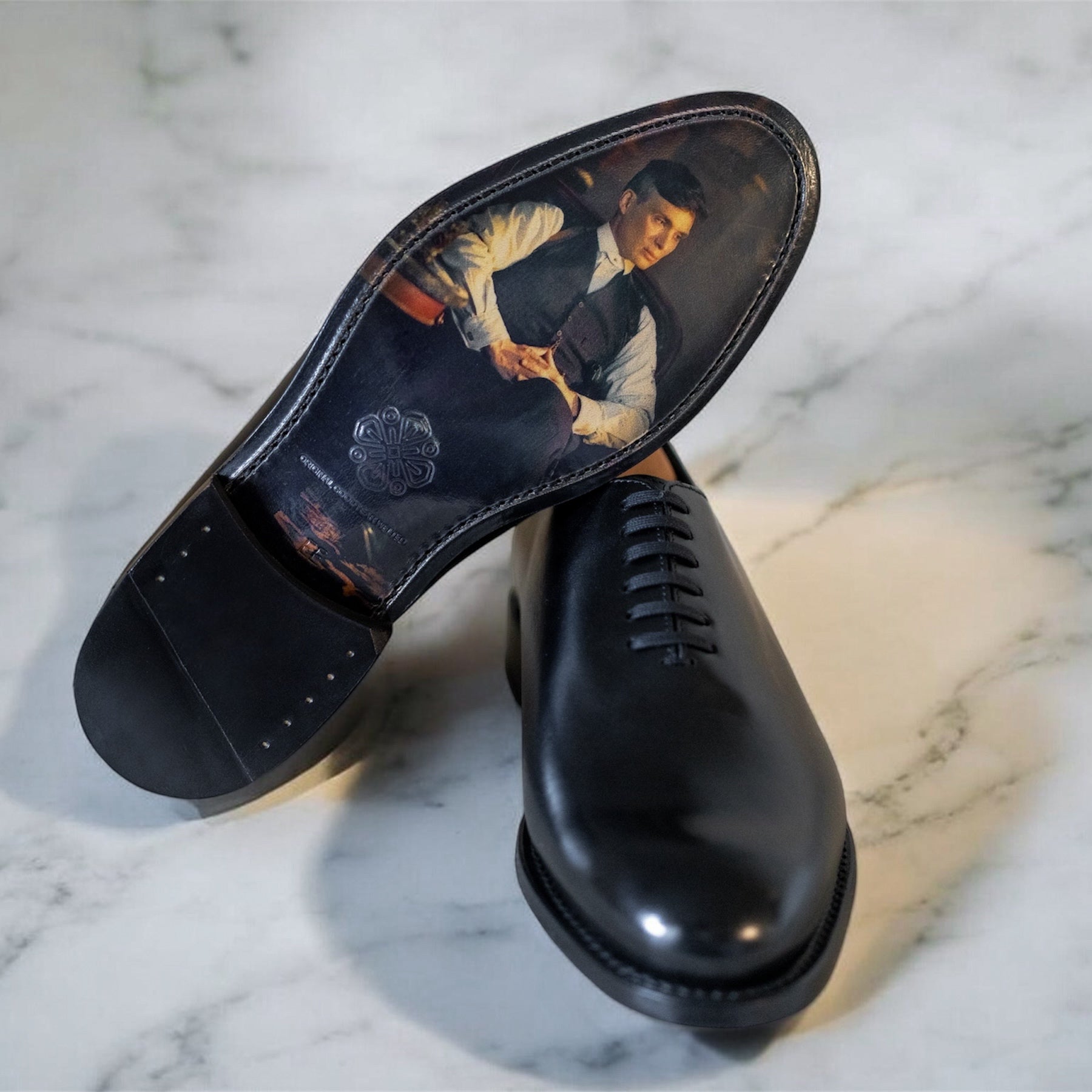 𝟣 𝑜𝒻 𝟣 handmade Wholecut made from premium black calfskin leather — a tribute to Thomas Shelby, featured on the sole.